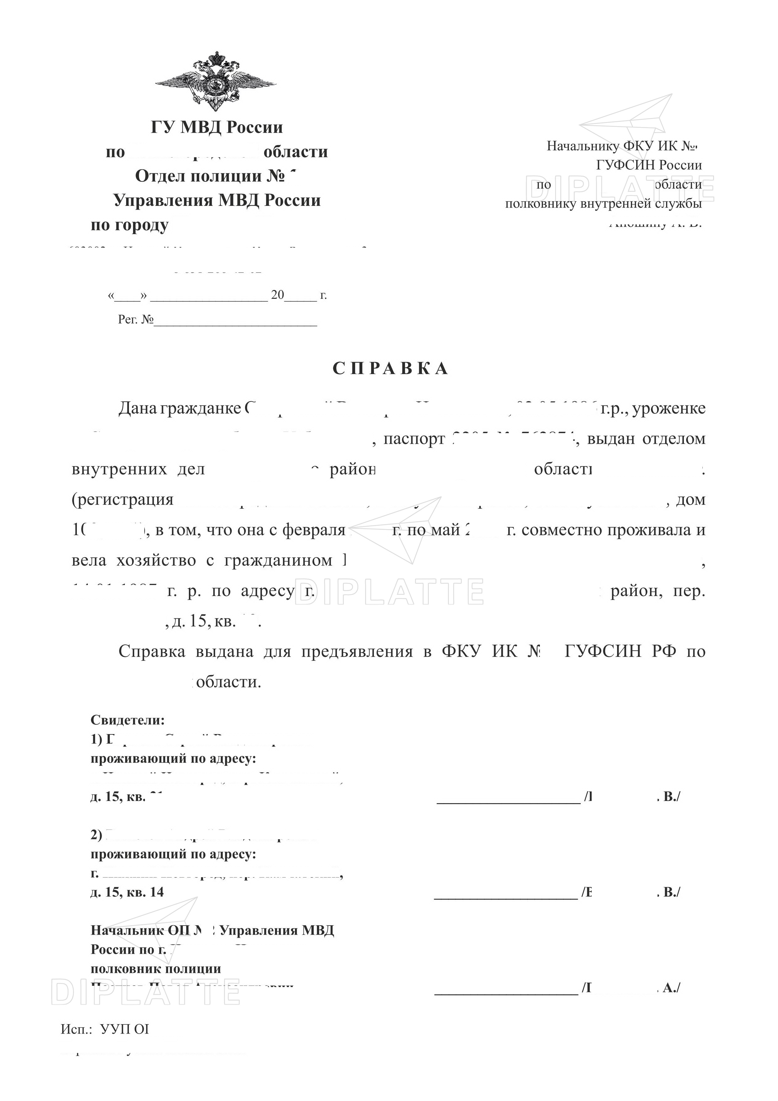 справка девушки о сожительстве с моим сыном для подтверждения родственных и проживание с ним в ик обухово на свидание