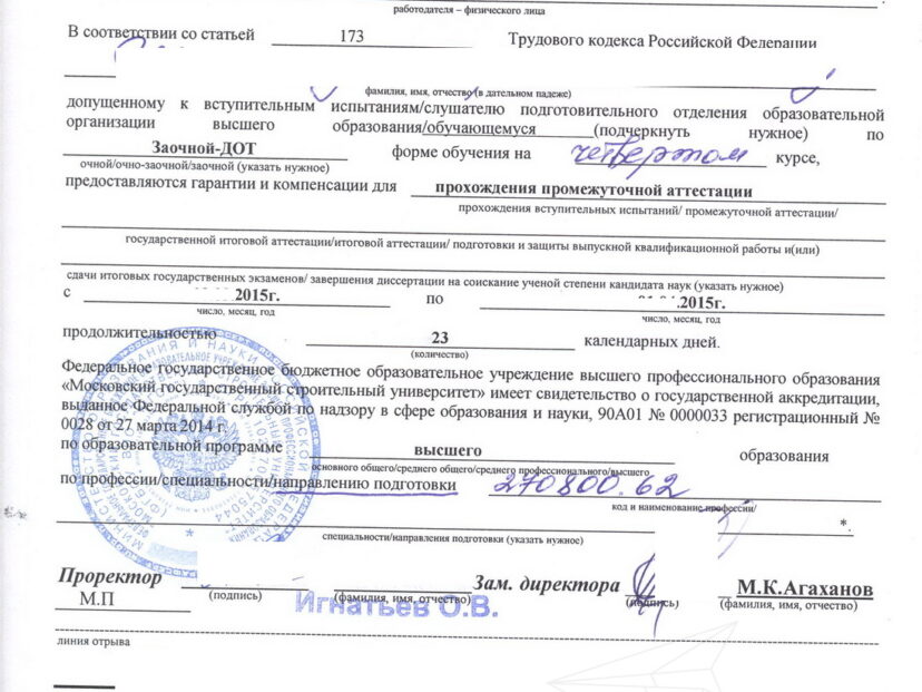 Справка об обучении в ВУЗе, техникуме, колледже